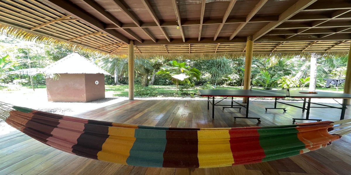 It is currently used for a ping pong table, a hammock, 2 sitting areas and a small outdoor dining table for the guest suite.
